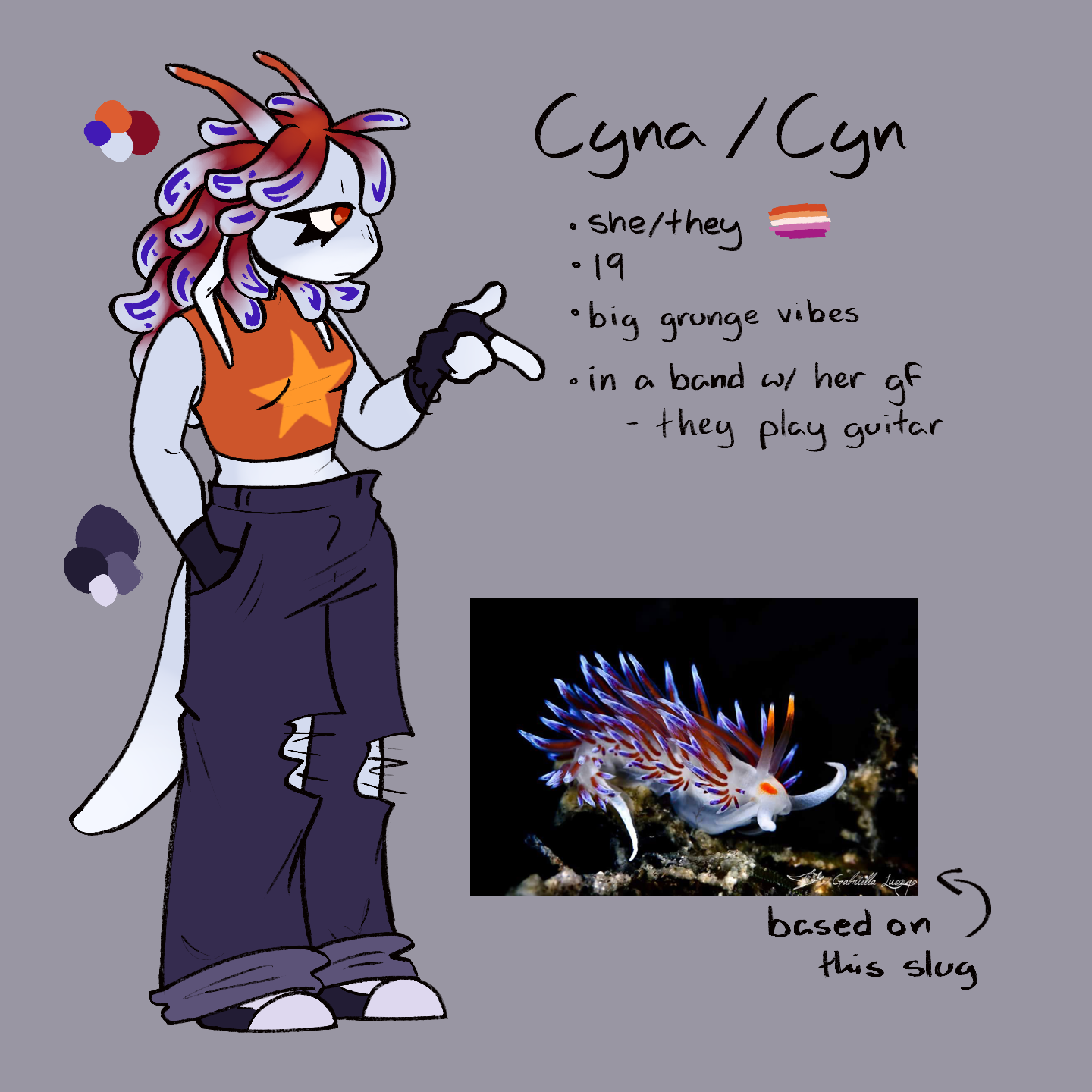 Anthropomorphic sea slug designs